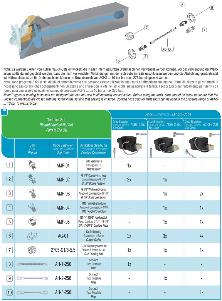 • 2 Zuführungen des Kühlmittels zur Wendeplatte: