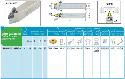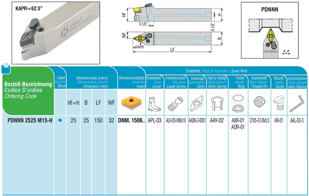 PDNNN 2525 M15-H AKKO Außen-Drehhalter 62.5° mit Innenkühlung