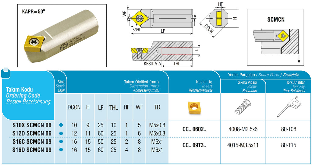 S16D SCMCN 09 AKKO Kurzdrehhalter ø 16 mm für ISO-WSP CC.. 09T3..