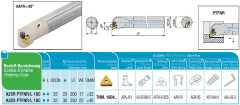 A25R PTFNR 16C Akko-Bohrstange ø 25 mm für ISO-WSP TNM. 1604..