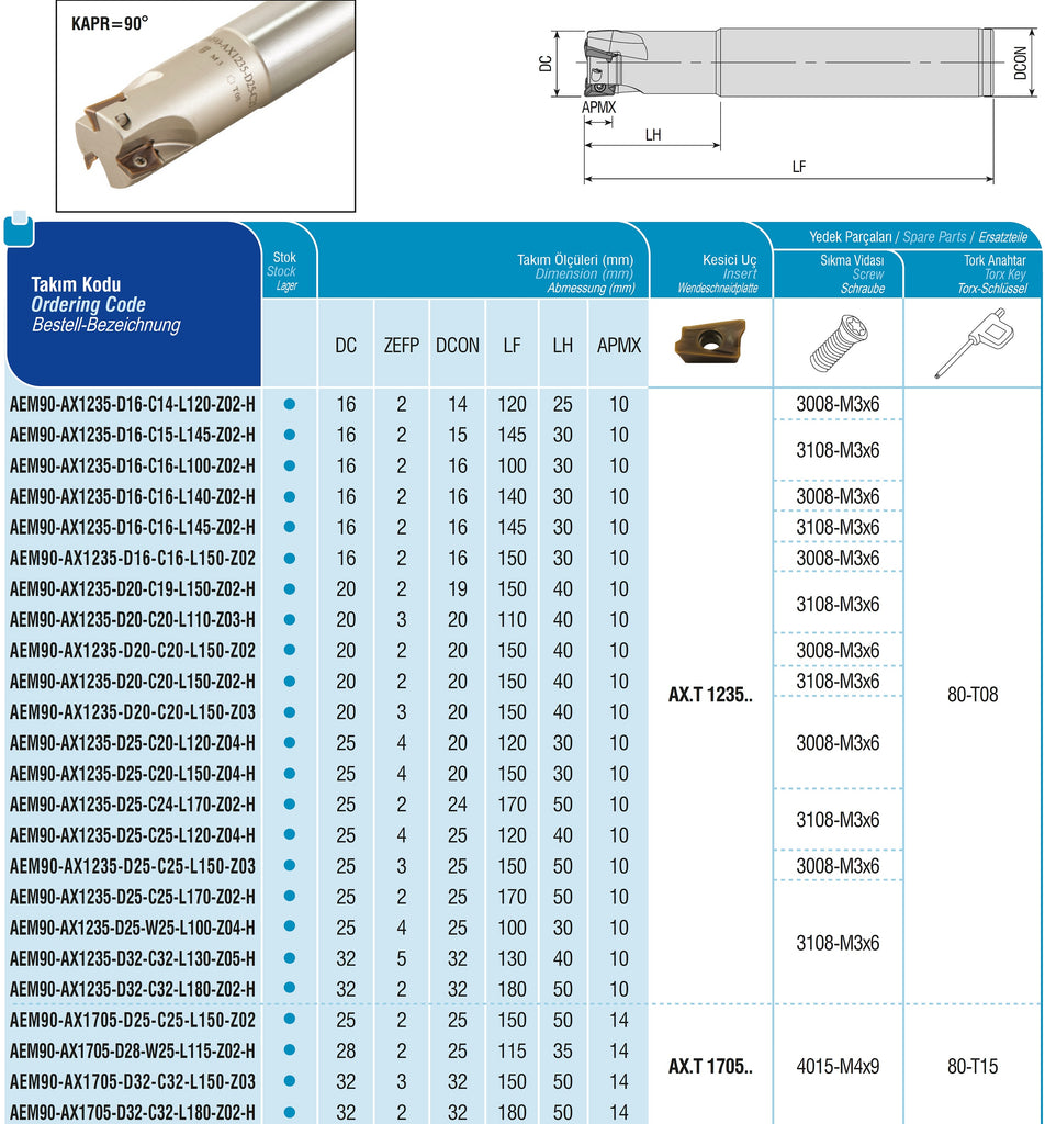 AKKO Wendeplatten-Schaftfräser ø 20 mm, 90°, kompatibel mit Sumitomo AX.T 1235..