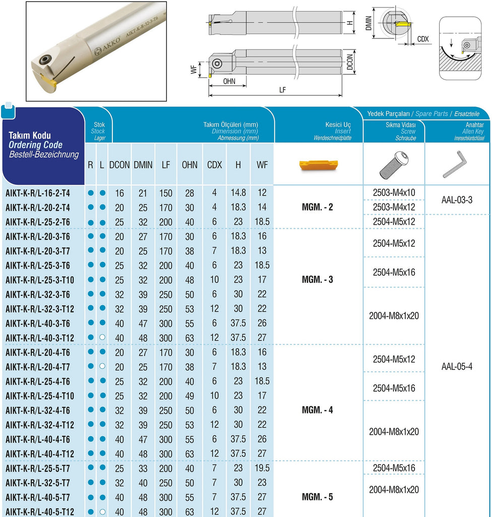 AKKO Innen-Stechhalter, kompatibel mit Korloy-Stechplatte MGM.-4