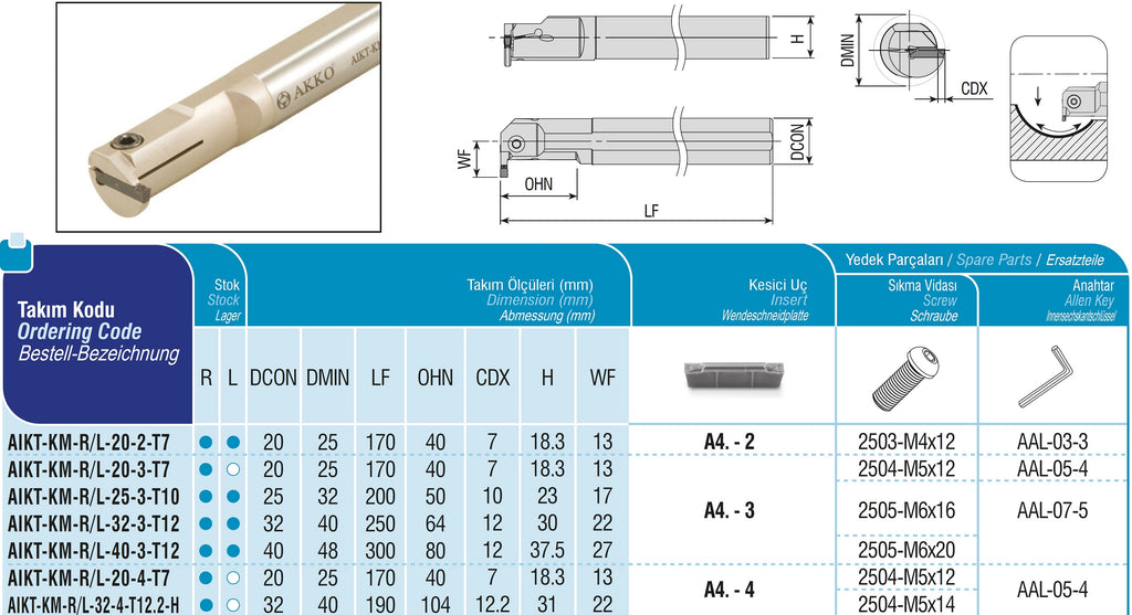 AKKO Innen-Stechhalter, kompatibel mit Kennametal-Stechplatte A4.-3