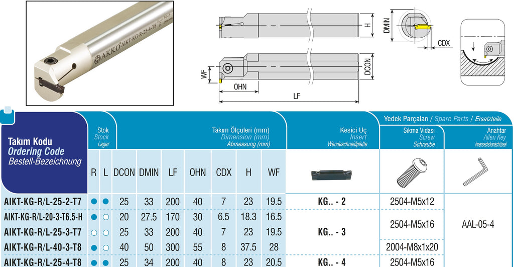 AKKO Innen-Stechhalter, kompatibel mit Korloy-Stechplatte KG..-2
