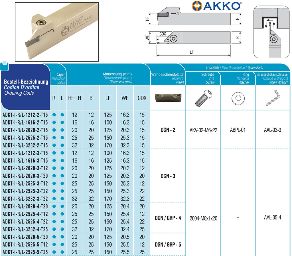 AKKO Außen-Stechhalter, kompatibel mit Iscar-Stechplatte DGN/GRP-4