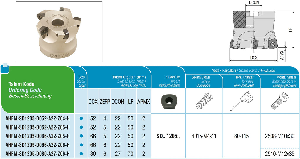 AKKO Hochvorschub-Messerkopf für Wendeplatten, ø 80 mm, kompatibel mit Hitachi SD.. 1205..