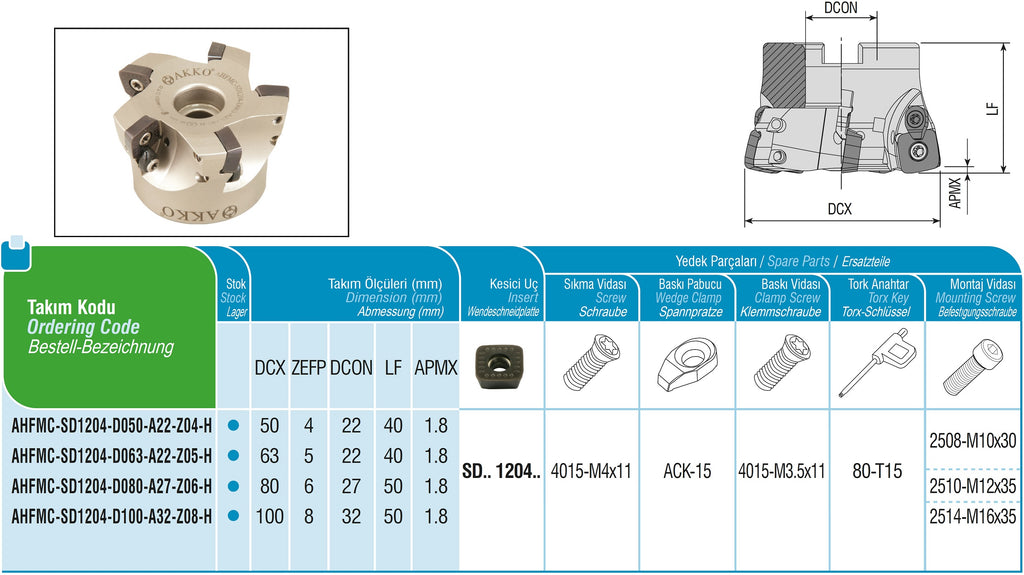 AKKO Hochvorschub-Messerkopf für Wendeplatten, ø 50 mm, kompatibel mit ZCC SD.. 1204..