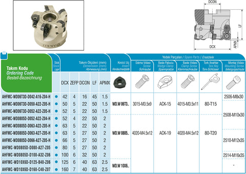 AKKO Hochvorschub-Messerkopf für Wendeplatten, ø 52 mm, kompatibel mit Dijet WD.W 0805..