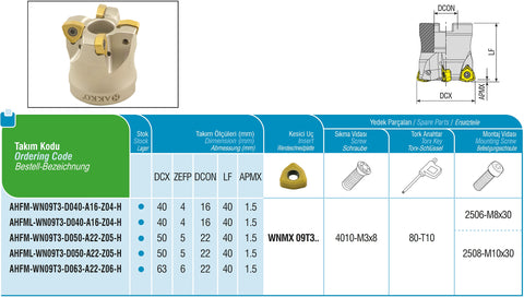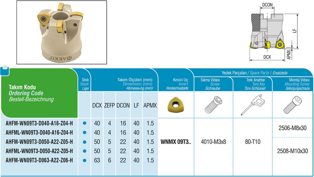 AKKO Hochvorschub-Messerkopf für Wendeplatten, ø 50 mm, kompatibel mit Korloy WNMX 09T3..