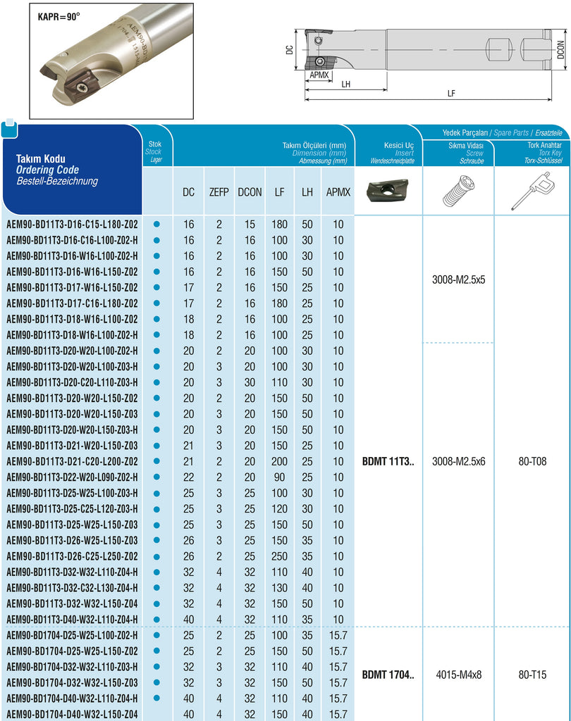 AKKO Wendeplatten-Schaftfräser ø 20 mm, 90°, kompatibel mit Kyocera BDMT 11T3..