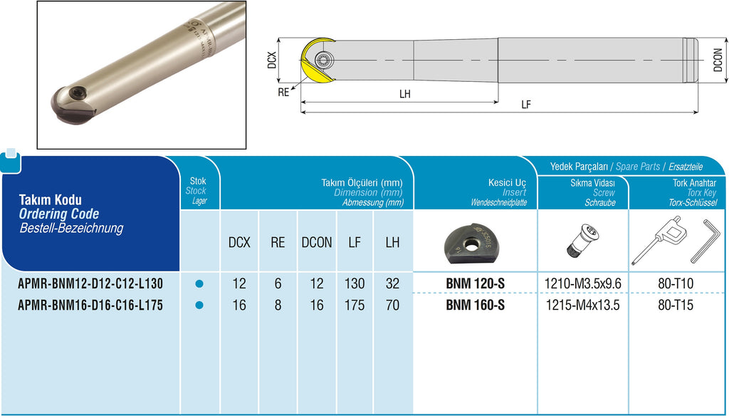 AKKO Kugelkopierfräser für Wendeplatten, ø 12 mm, kompatibel mit Dijet BNM 120-S