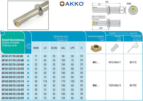 AKKO Werkzeughalter für Nutbearbeitung, Dmin = 30 mm, Bearbeitungstiefe = 110 mm, kompatibel mit AKKO-Wendeplatte B42…