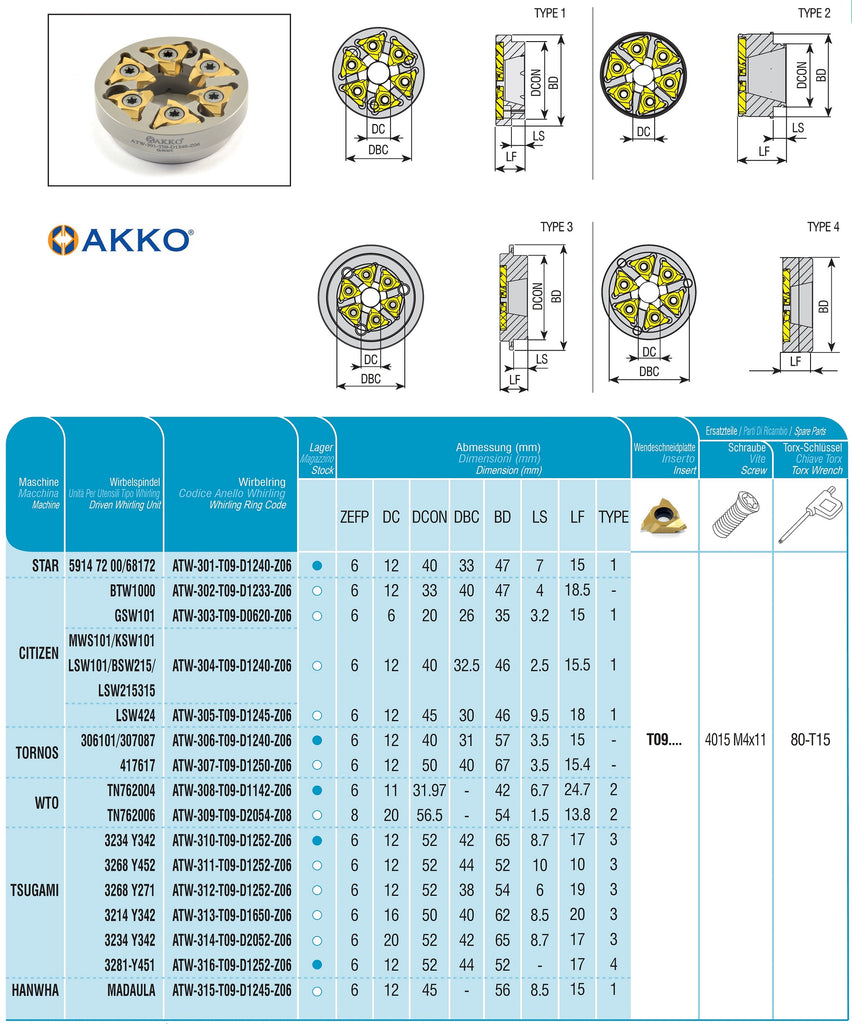 AKKO Wirbelring zum Gewindewirbeln für TSUGAMI-Maschine, Ringdurchmesser = 65 mm, kompatibel mit AKKO-Wendeplatte T09…