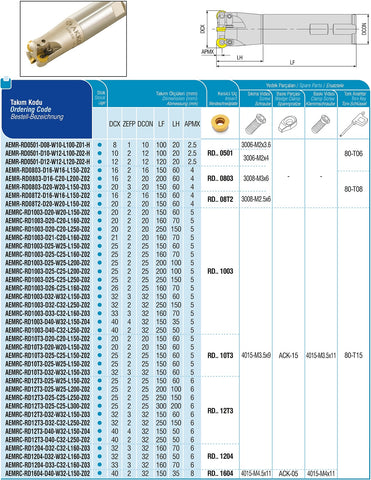 AKKO Wendeplatten-Kopierfräser ø 32 mm, 90°, kompatibel mit ISO RD.. 10T3..