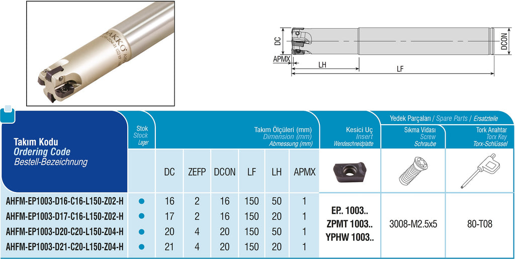 AKKO Hochvorschub-Schaftfräser ø 25 mm, 90°, kompatibel mit Dijet EP.. ZPMT YPHW 1003....