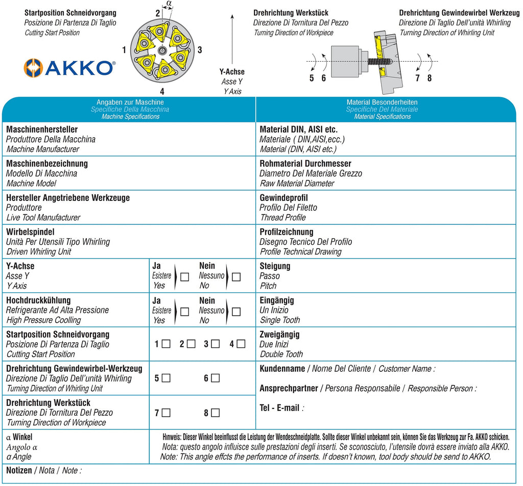 AKKO Wendeplatte zum Gewindewirbeln, Steigung TP = 1.27 mm, α = 60°